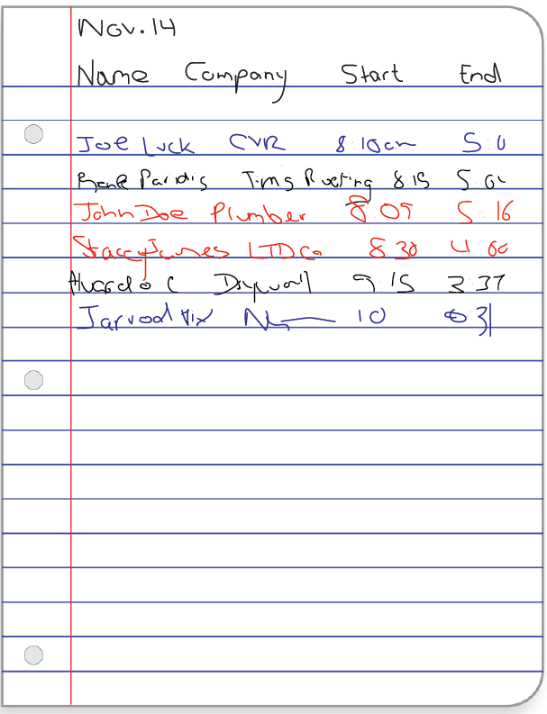 Here are several ways that contractors are recording time and attendance manually on the jobsite: